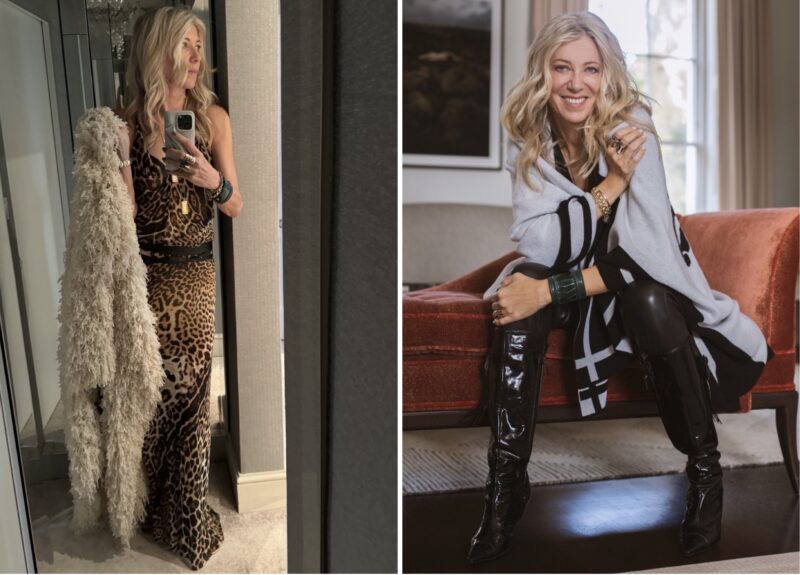 DK: “That’s definitely a toss up between my leopard Saint Laurent long dress (above, left) – which I always hand-carry when I travel as it’s so fabulous – and my gold beaded Kaufmanfranco gown that I wore to my daughter’s wedding, it zips off into a mini dress! It’s HOT!”